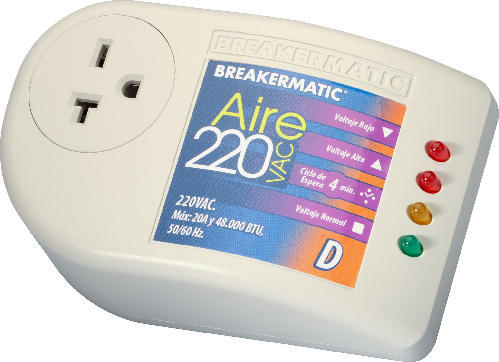 El BREAKERMATIC Aire 220 D es un protector electrónico de voltaje diseñado especialmente para prevenir los daños que un apagón o un voltaje alto o bajo pueda causarle a su equipo de Aire Acondicionado. Es ideal para equipos provistos con clavija o enchufe para la conexión, facilitando la instalación de la protección sin intervenir el equipo.