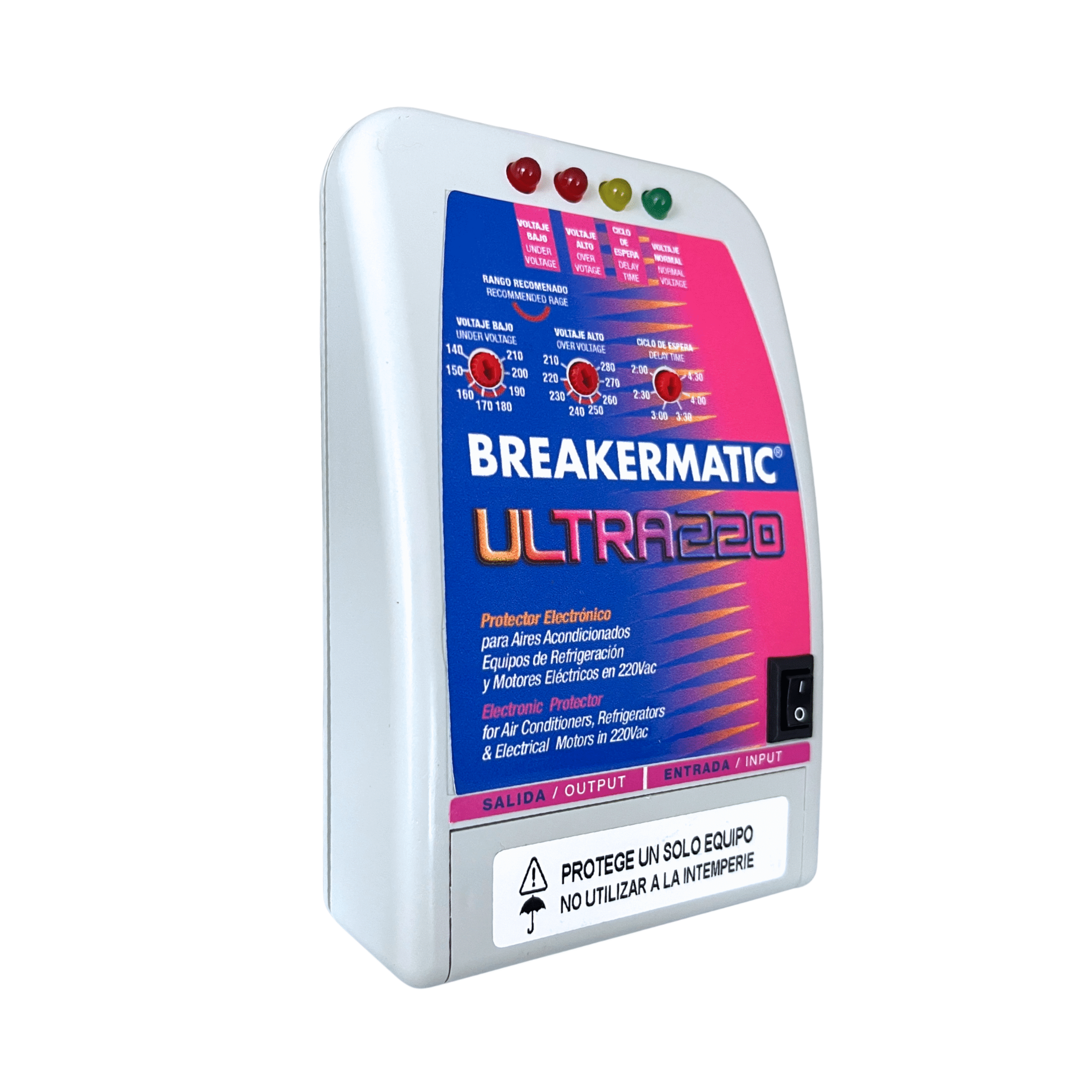 El BREAKERMATIC Ultra 220 AT es un protector electrónico de voltaje de alta capacidad diseñado especialmente para evitar los daños a aparatos de refrigeración, aire acondicionado y motores eléctricos, provocados por las variaciones de voltaje y otras perturbaciones del suministro eléctrico.